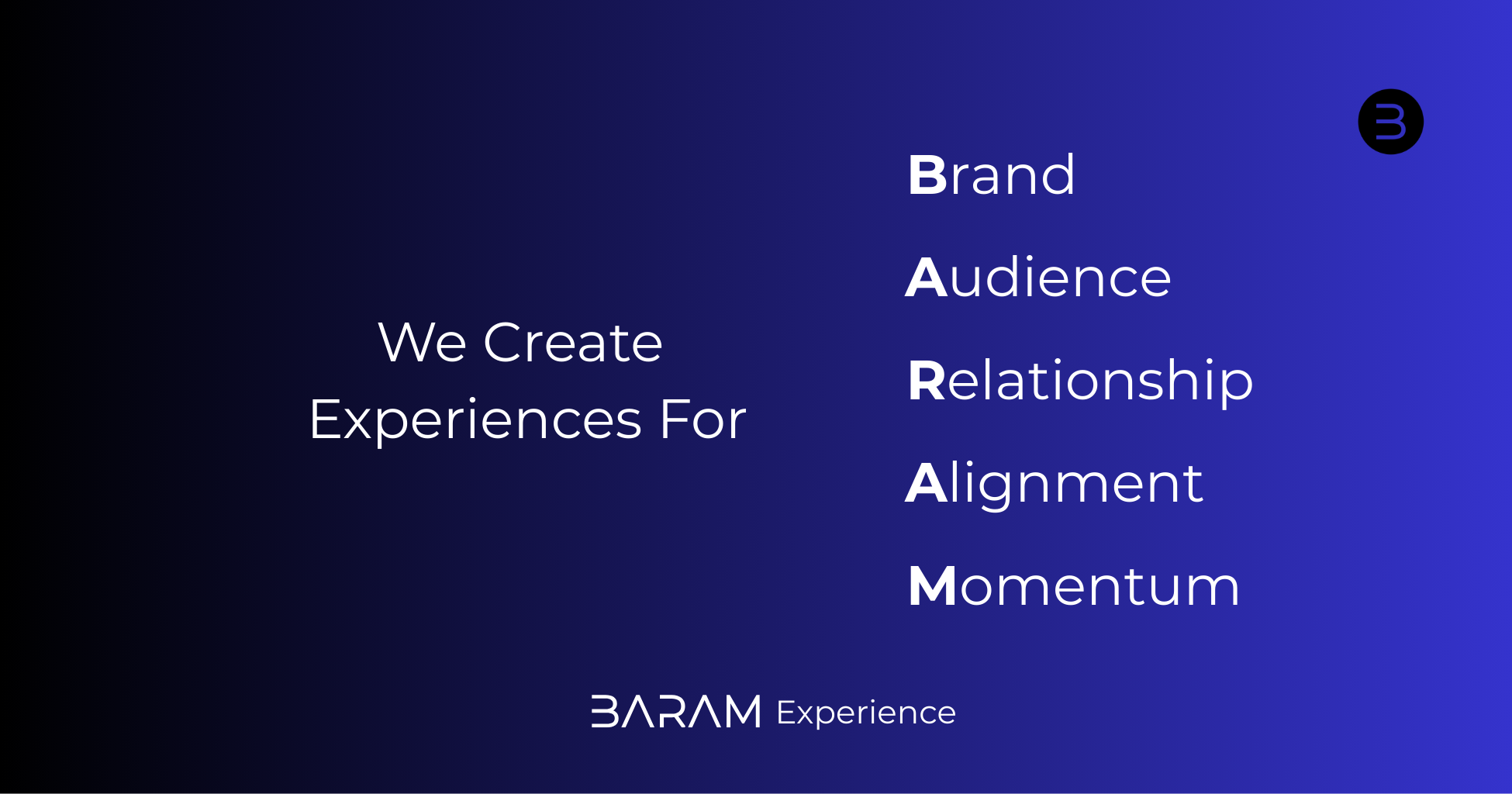 BARAM Experience는 AI 시대의 브랜드 경험 설계를 통해 지속 가능한 성장을 돕는 전략 파트너입니다.