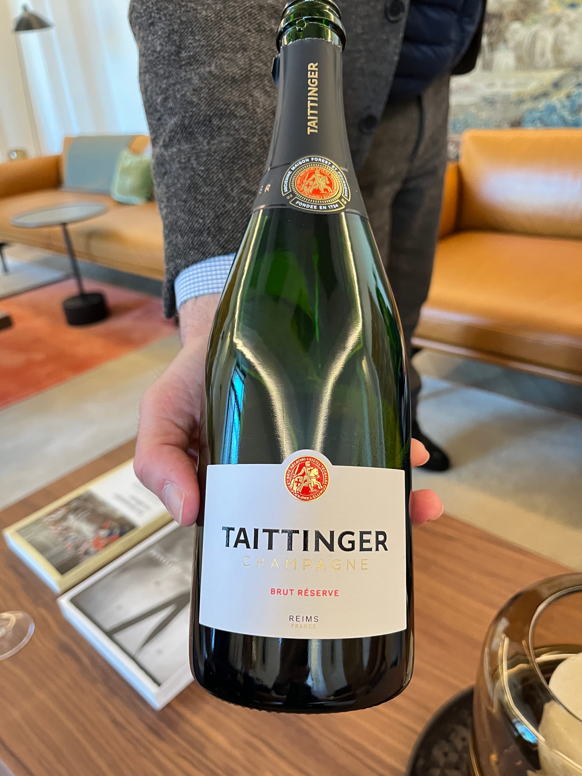 Taittinger Brut Reserve is Taittinger's signature champagne, with a balanced taste that combines fresh fruit aromas, toast, almond powder, slight acidity, white flowers, butterscotch, whiskey vanilla, and pear.